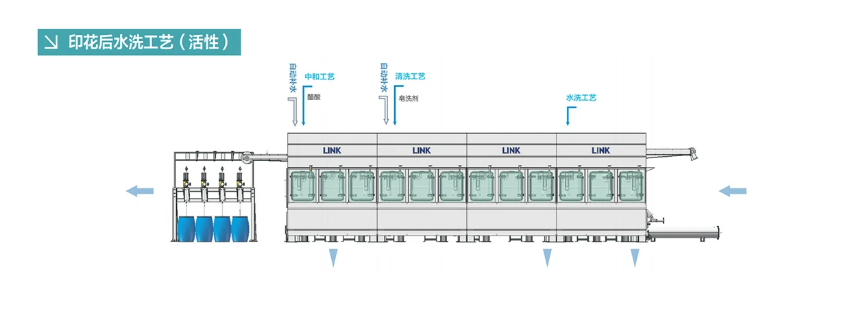 高效水洗模式:平幅水洗搭配绳状水洗往复式水洗,超声波水洗。
